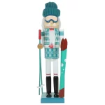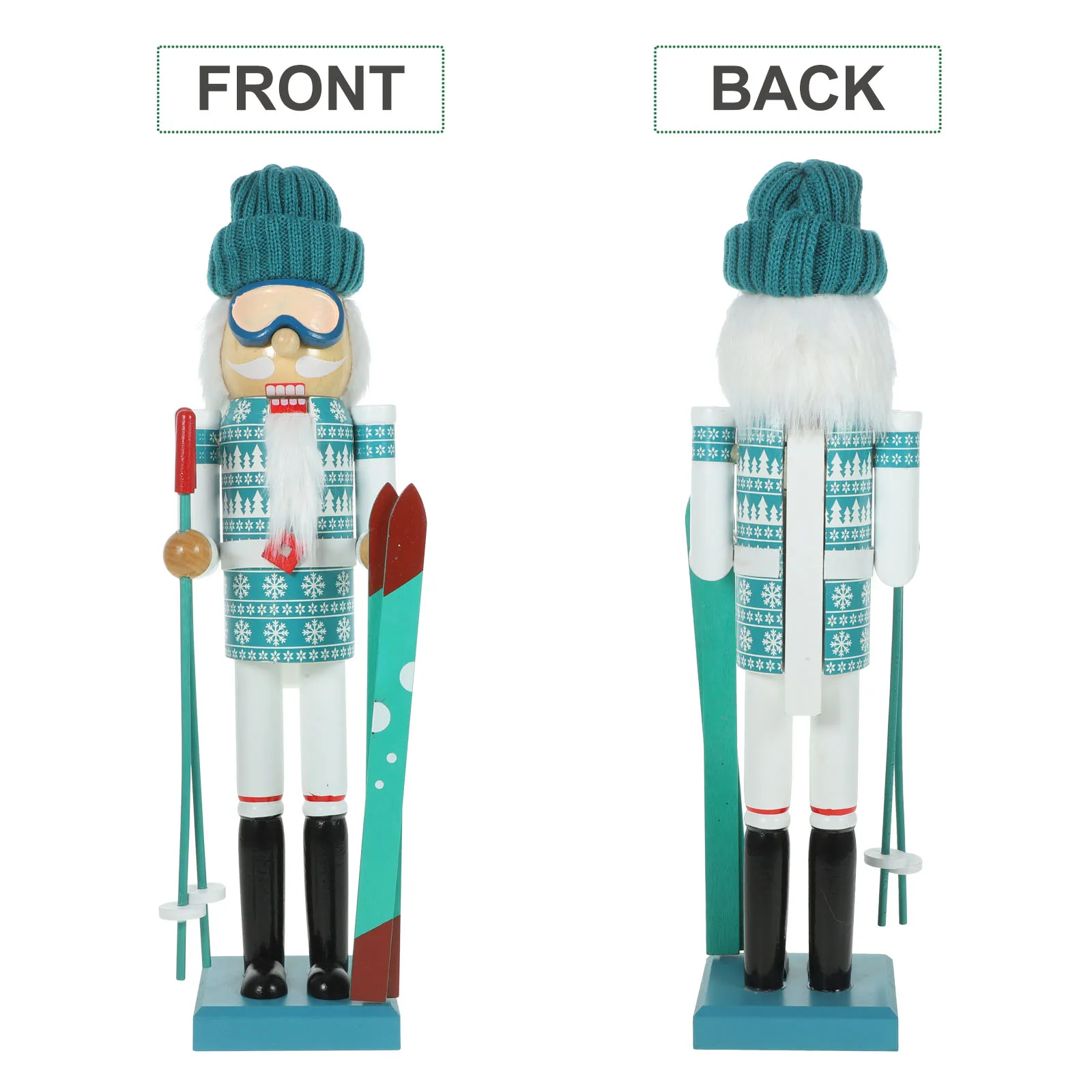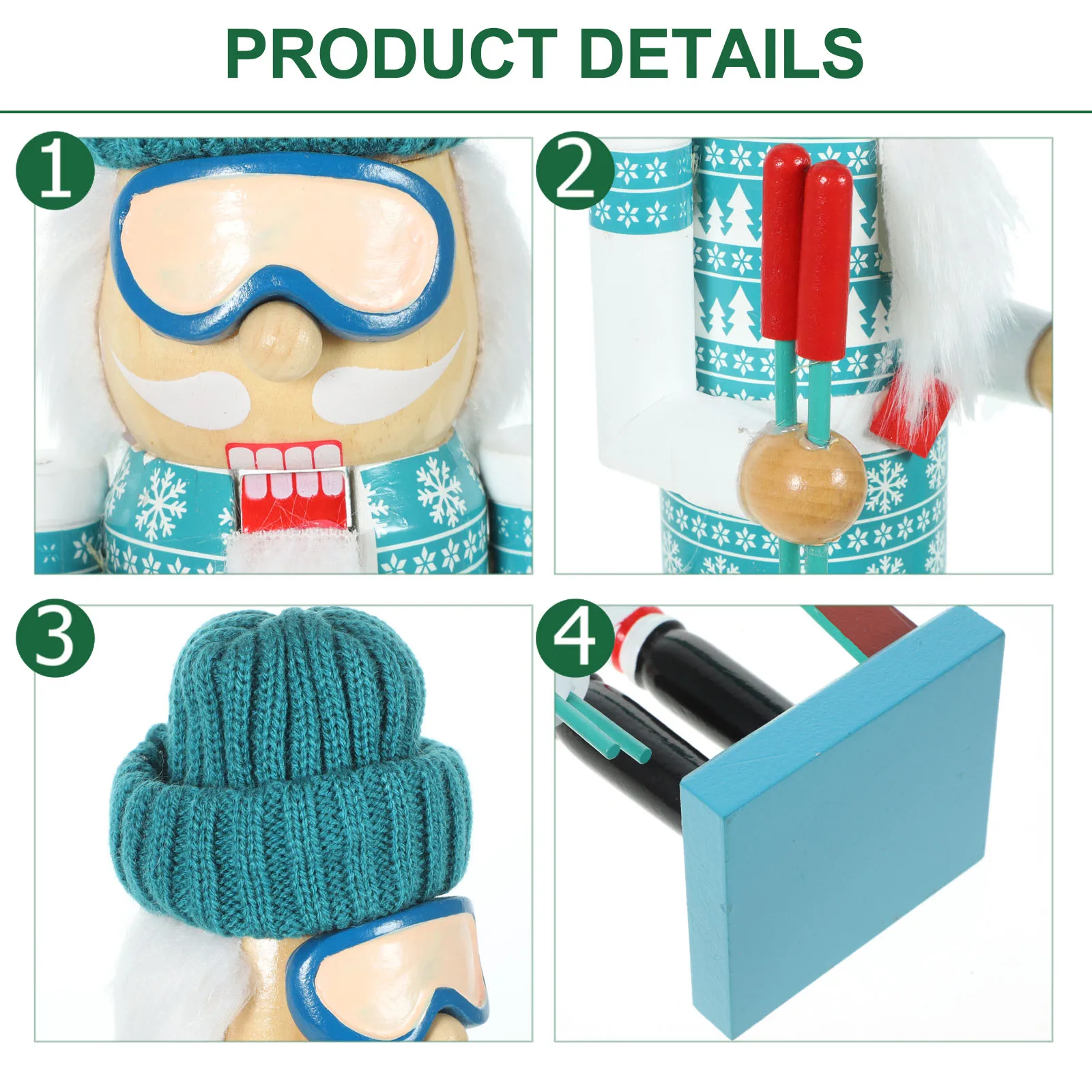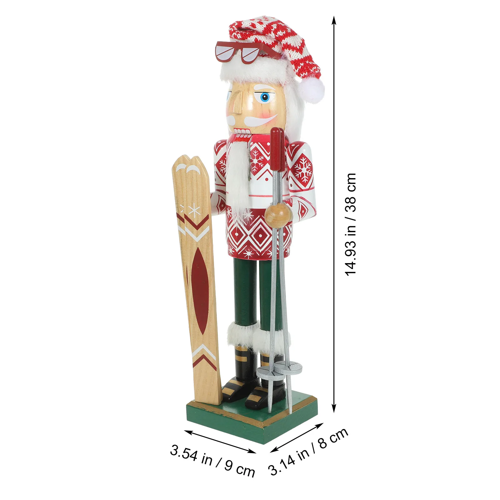 30cm Wooden Skiing Puppet Craft Christmas Traditional Puppet Figure for Home Fireplace Decoration Nutcracker Decorations