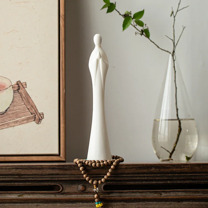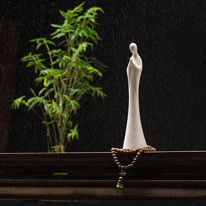 This elegant porcelain craft piece embodies the essence of Zen Buddhism, offering a sense of tranquility and mindfulness. Whether placed in your living room, bedroom, or meditation space, this sculpture will bring a sense of peace and relaxation to your surroundings.