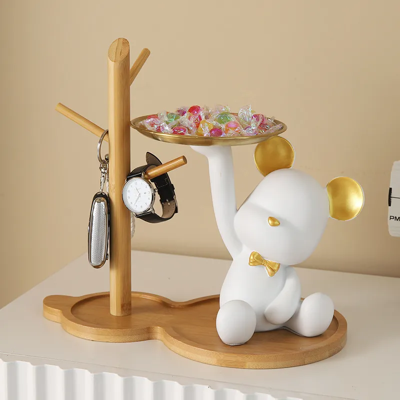 Bearbricklys Key Storage Tray – Resin Figurines for Candy & Snacks – Desktop Ornament for Home Decor – Unique Gifts for Porch