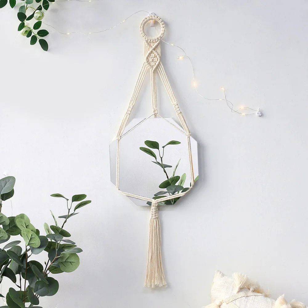 Tired of dull, boring walls in your living room, bedroom, or dorm? Our Boho Chic Geometric Macrame Wall Mirror Decoration is the perfect solution to add a touch of style and sophistication to any space. This unique home decor piece will instantly elevate the look of your room and create a cozy, bohemian atmosphere that is sure to impress your guests.
