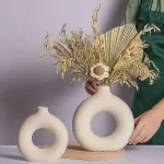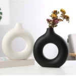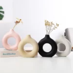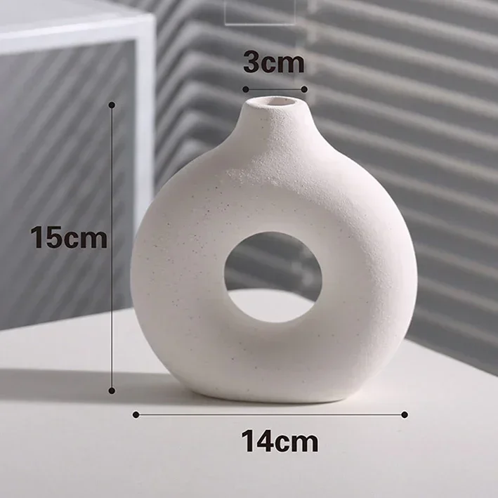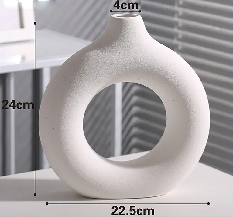 Are you looking for a stylish and elegant way to decorate your living room, office, or any other space in your home? Look no further than the Nordic Vase Circular Hollow Ceramic Donuts Flower Pot. This stunning piece not only adds a touch of sophistication to any room but also serves as the perfect accessory to showcase your favorite flowers or plants.