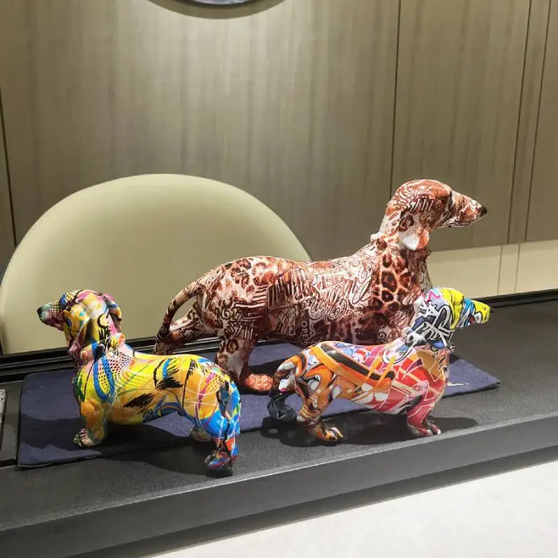 Brighten up your home or office space with this whimsical and vibrant Painted Colorful Dachshund Dog Decoration. Perfect for wine cabinets, tabletops, or any empty surface that needs a touch of personality, this resin craft miniature statue is the perfect addition to any modern interior.