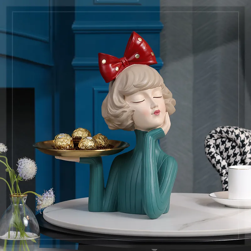 Modern Bow Girl Statue for Entrance Key, Storage Tray, Ornaments, Home Decor Crafts, Figurines, Snacks Candy Storage Tray, Gift