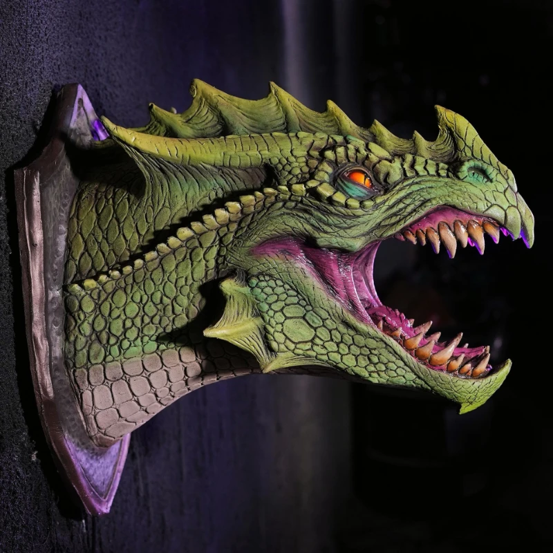 Dragon Legends Prop 3d Wall Mounted Dinosaur Smoke Light Wall Art Sculpture Shape Statue Home Decor Room Halloween Decoration