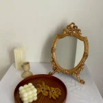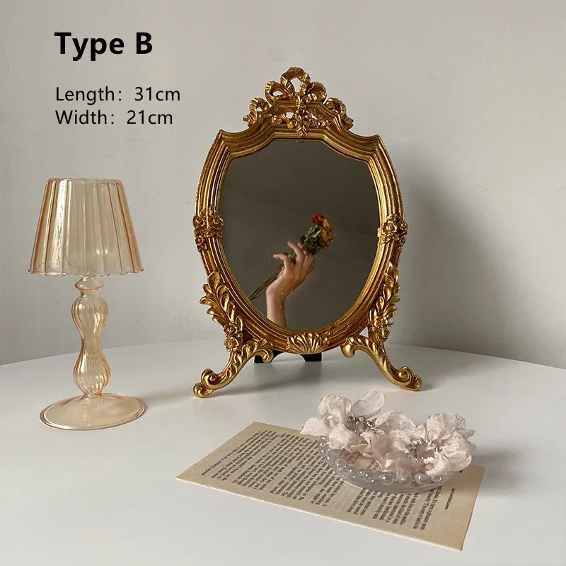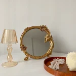 With this stunning mirror stand, you can elevate your daily beauty routine while adding a touch of elegance to your space. Picture yourself effortlessly applying makeup or grooming with ease, all while basking in the beauty of this exquisite accessory. Say goodbye to dull and uninspiring mirrors and hello to a new level of sophistication with our European Resin Carved Round Antique Gold Desk Mirror Stand.