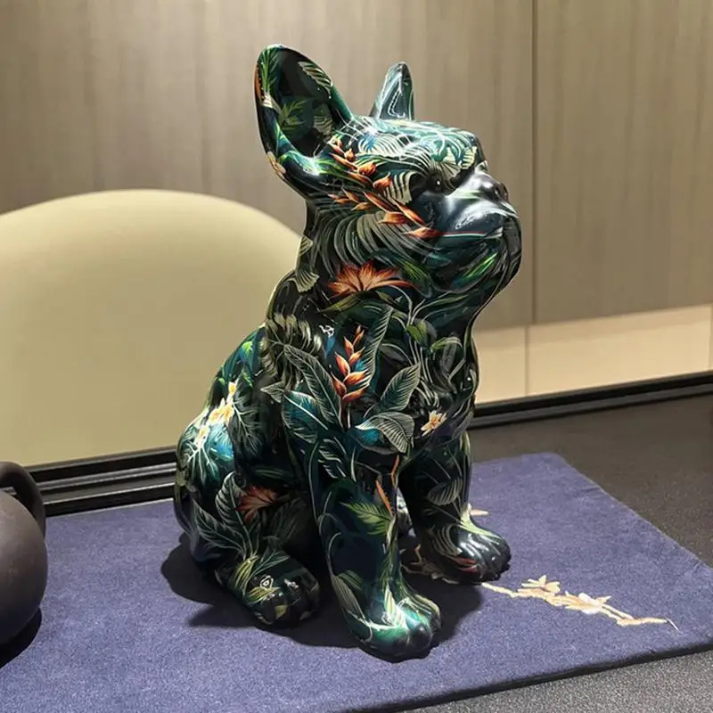 - Meticulously crafted with attention to detail, this graffiti dog statue captures the playful essence of French Bulldogs.