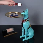 “Handcrafted Resin Doberman Pinscher Dog Sculpture with Tray – Key and Jewelry Organizer for Living Room Decor and Table Accent”