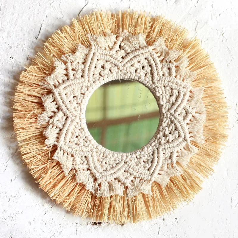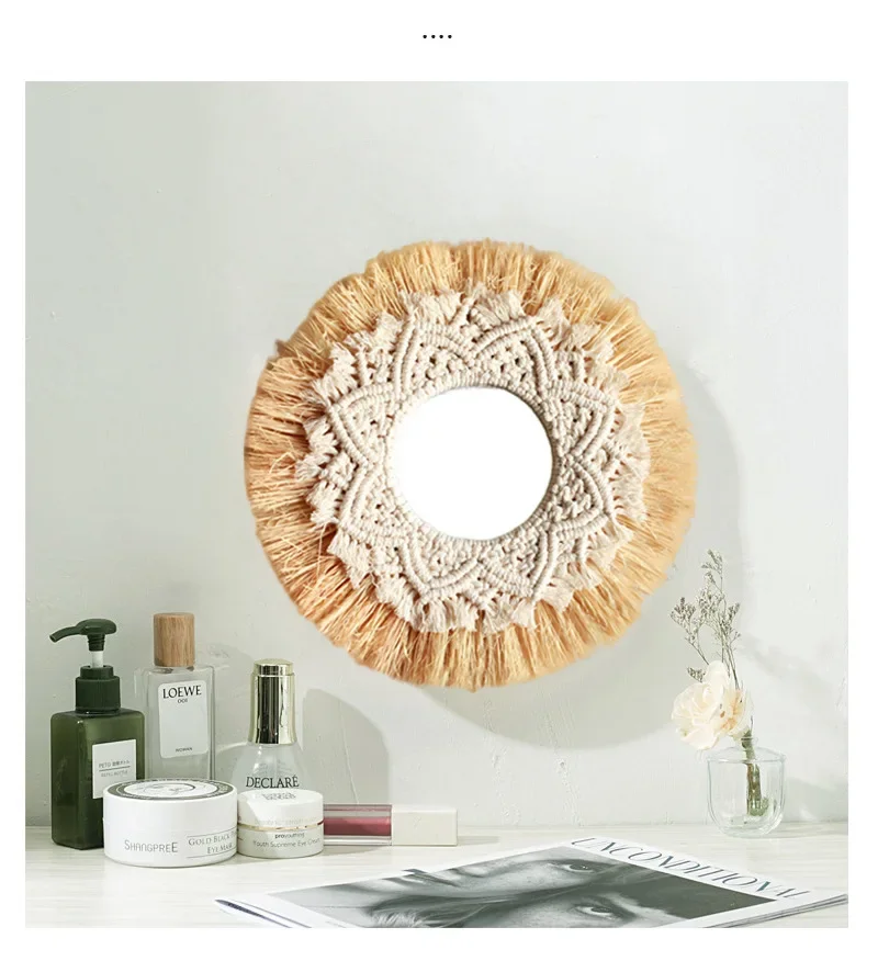 Elevate the atmosphere of any room with our Handmade Boho Straw Woven Mirror Wall Decor, perfect for adding a touch of bohemian style to your home or event space.