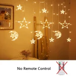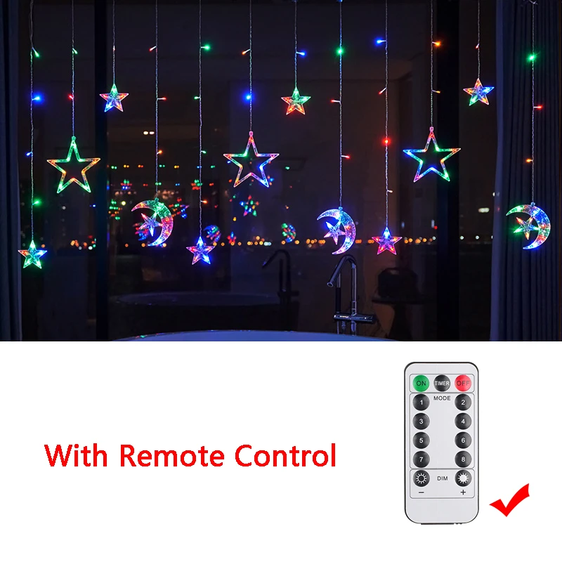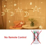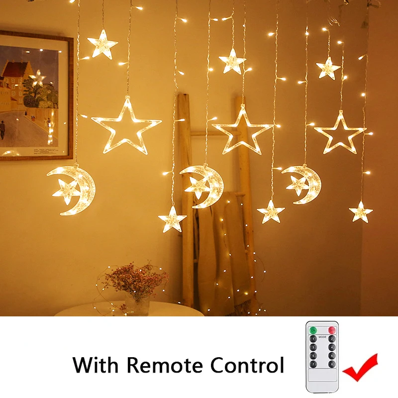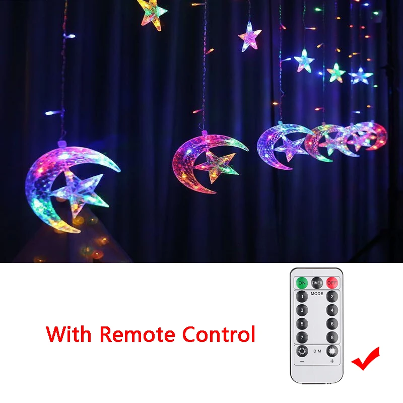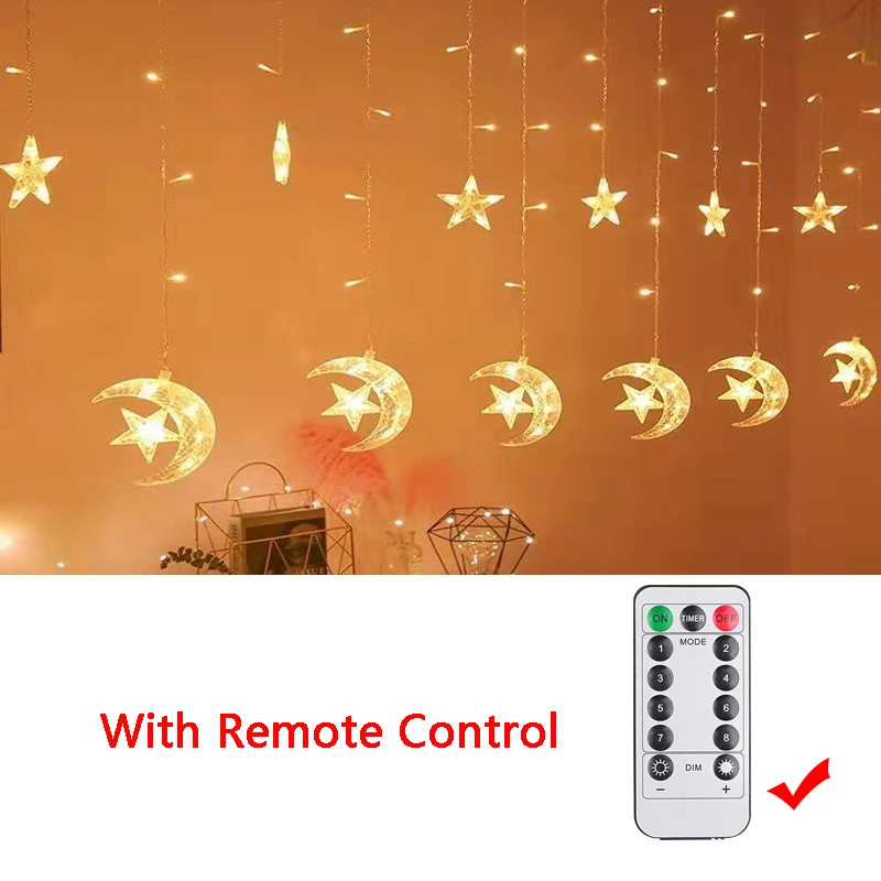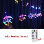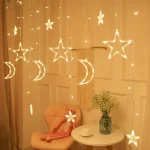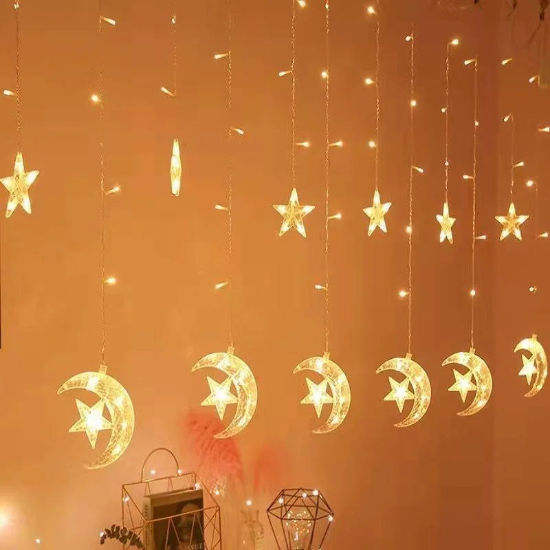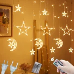 Experience the joy and warmth of the holy month of Ramadan with this stunning decoration. Transform your home into a peaceful and welcoming sanctuary with the Ramadan Decoration 2024 Star Moon Led Curtain Garland String Light. Make this Ramadan a truly memorable and special occasion for you and your loved ones.