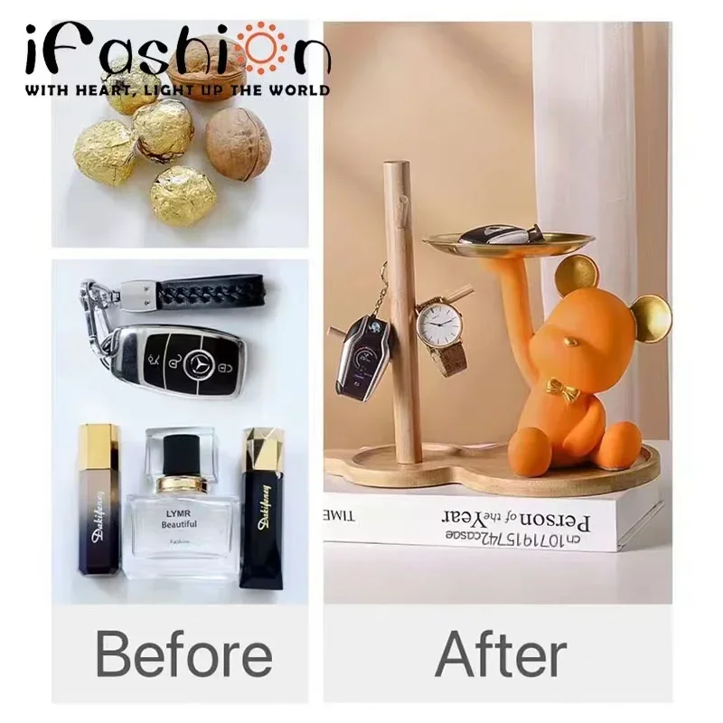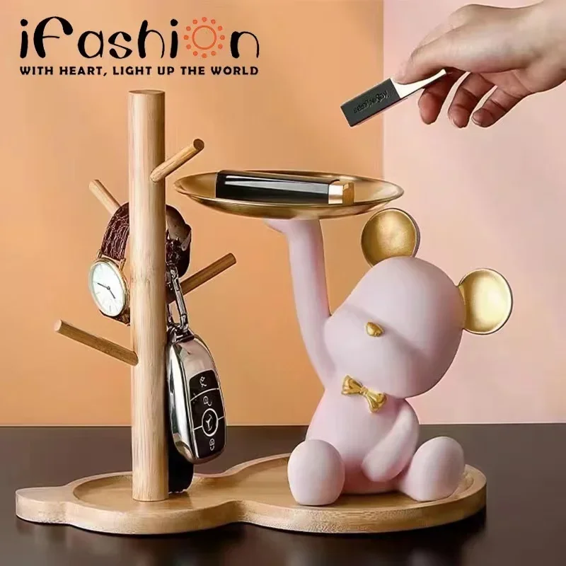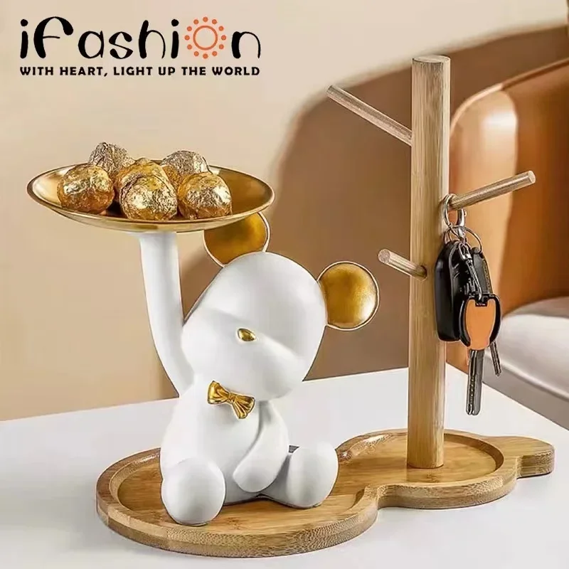 Sick of losing your keys or cluttering up your living room table with various items? Look no further than this Bear Statue Decor Key Storage Tray Set! Not only does it provide a cute and kawaii decoration for your home, but it also serves a practical purpose in keeping your keys, candy, fruit, or other small items organized and easily accessible.