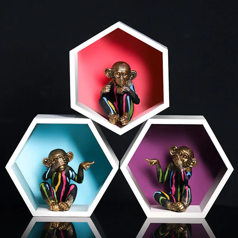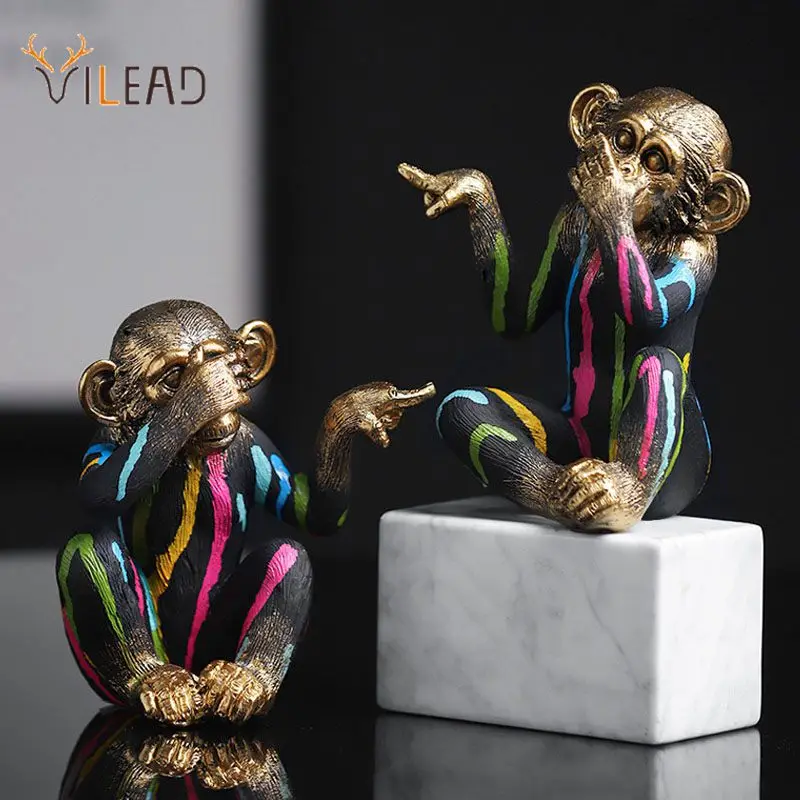 Vilead Painting Resin Monkey Figurine Animal Statue Modern Art Zen Home Living Room Bookshelf Office Desk Decoration Accessories