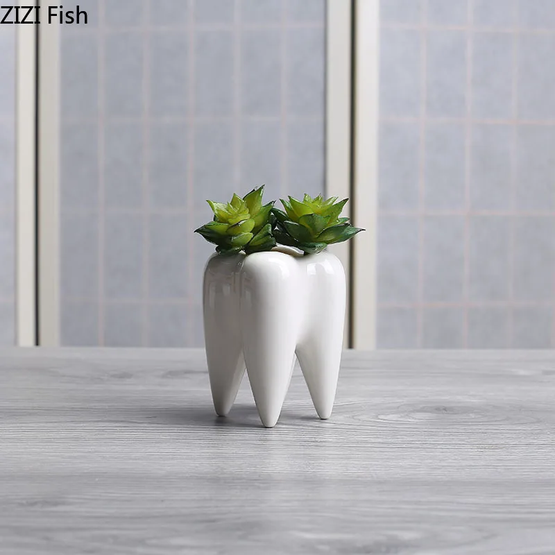 Modern Ceramic Dental Tooth Vase Decor for Living Room – Creative Flower Arrangement Art Decorator with Teeth Design