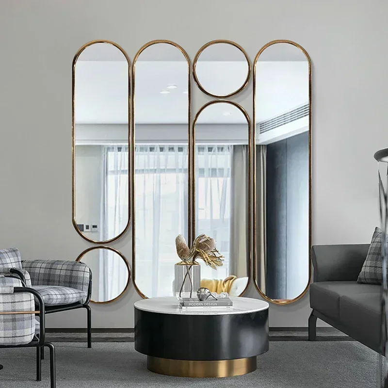 These floor mirrors are not just mirrors, but also decorative wall stickers that blend seamlessly into any room. The sleek metal frame adds a touch of elegance, while the minimalist design allows for versatile placement in various home décor styles.