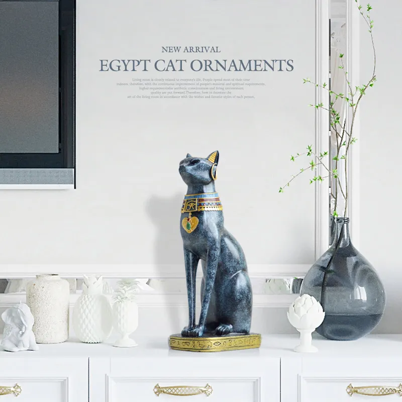 Spruce up your home with this exquisite Egyptian Cat resin craft, adding a touch of vintage charm to your interior décor. This Modern Vintage Bastet goddess god pharaoh figurine statue is the perfect table ornament or gift for any home decor enthusiast.