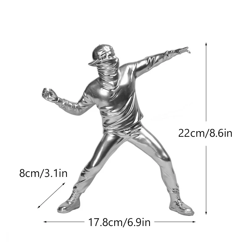 - Eye-catching design: Each figurine is meticulously crafted to replicate Banksy’s iconic flower thrower and bomber artworks, capturing the essence of urban graffiti art.