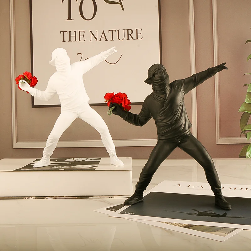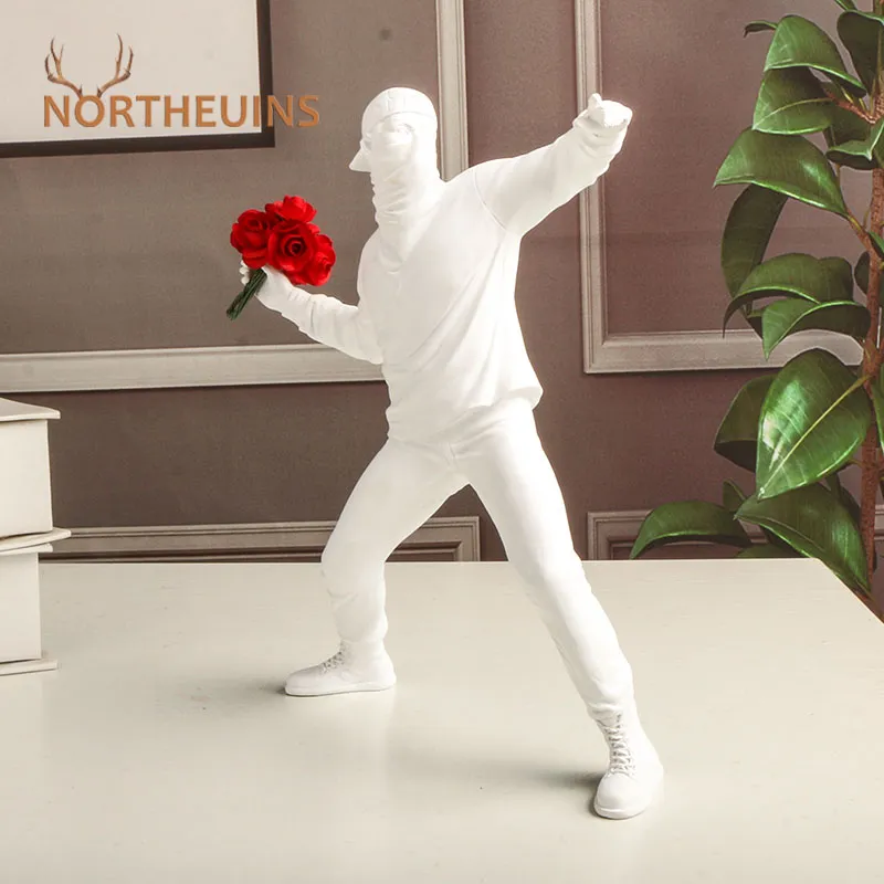 Introducing our NORTHEUINS Resin Banksy Figurines for Interior Flower Thrower Statue Bomber Sculpture Home Desktop Decor Art Collection Objects. This incredible collection of resin figurines is the perfect solution for all art enthusiasts and individuals who want to elevate their interior decor to a whole new level.