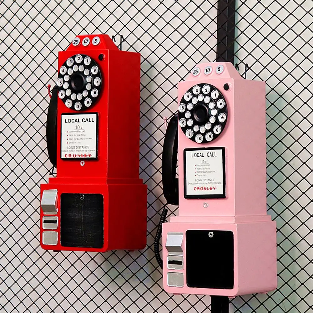Home Decor Vintage Telephone Model Wall Hanging Crafts Ornaments Retro Home Furniture Figurines Phone Miniature Decoration Gift