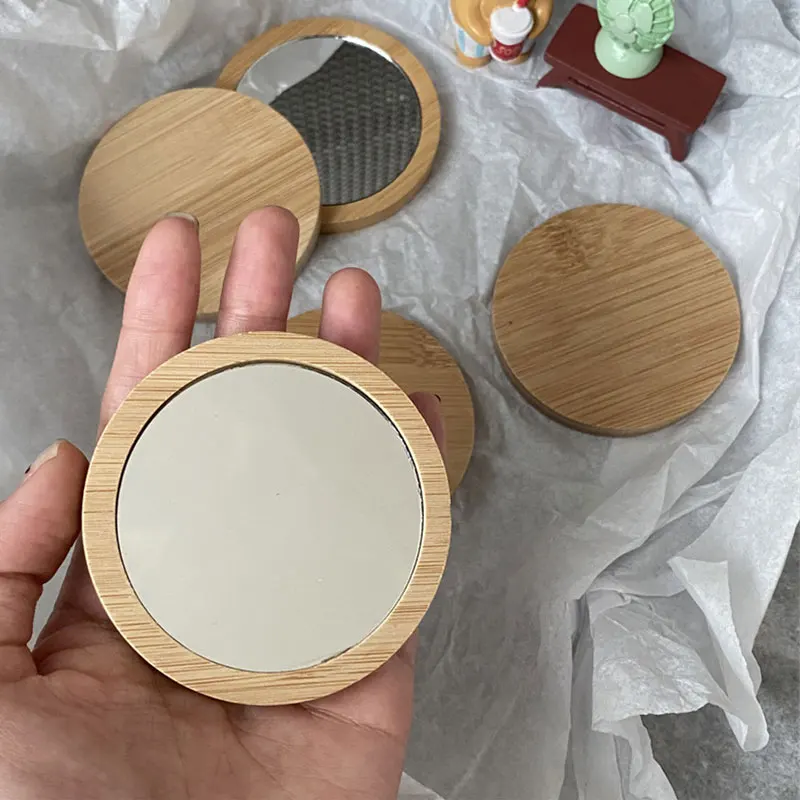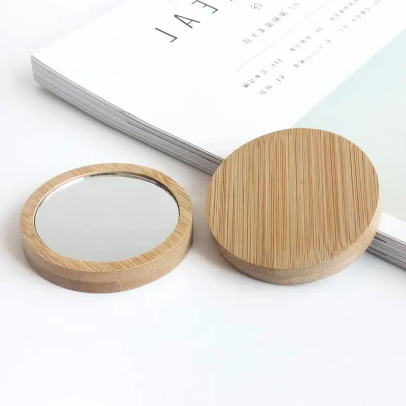 “Set of 30 Small Travel-friendly Wooden Round Makeup Mirrors – Beauty Essentials for Home Decor”