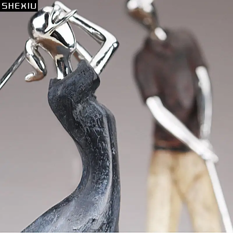 Golf Couple Crafts Abstract Character Statue Desk Decoration – Silver Lovers Figures Resin Sculpture Ornaments – Modern Home Decor