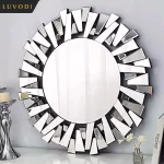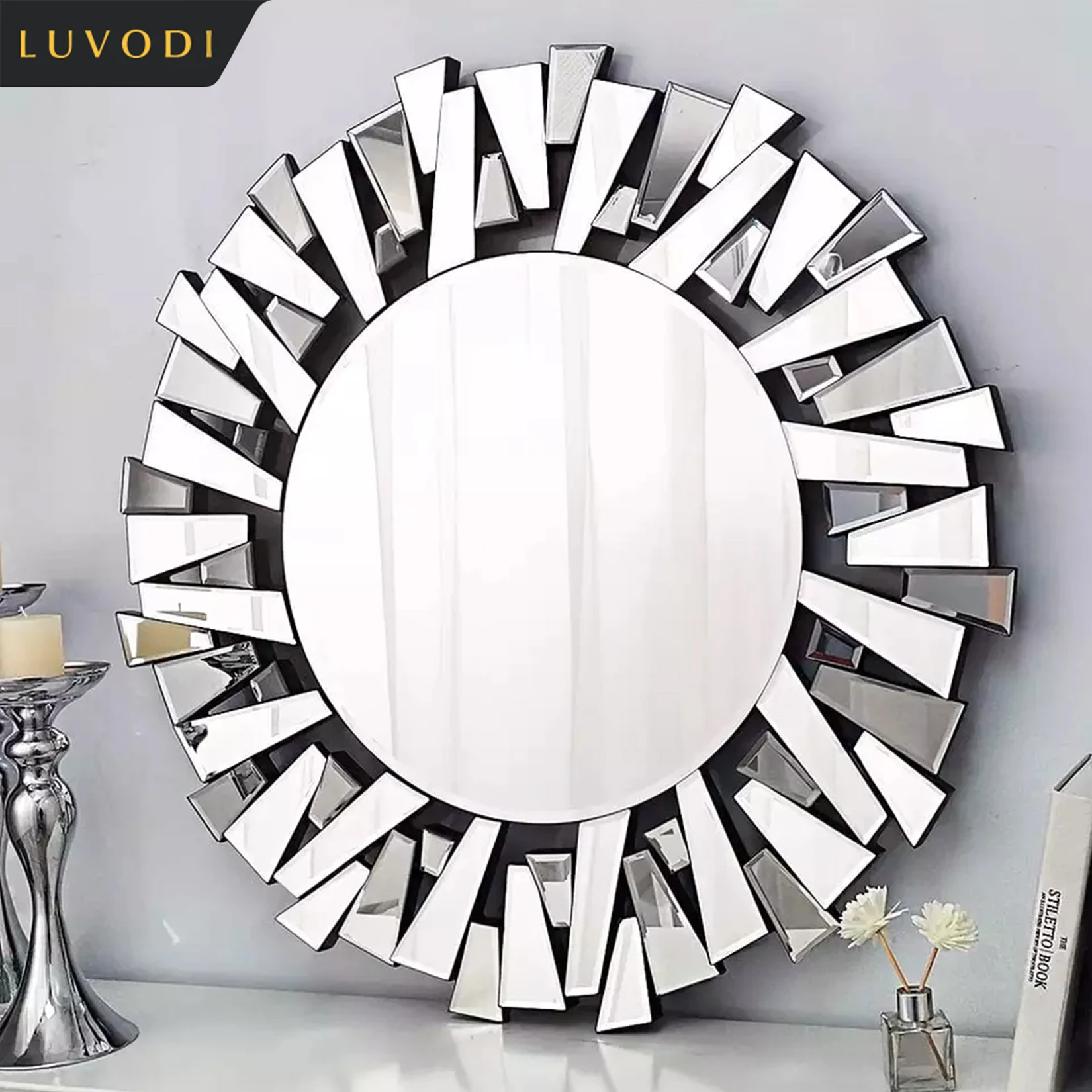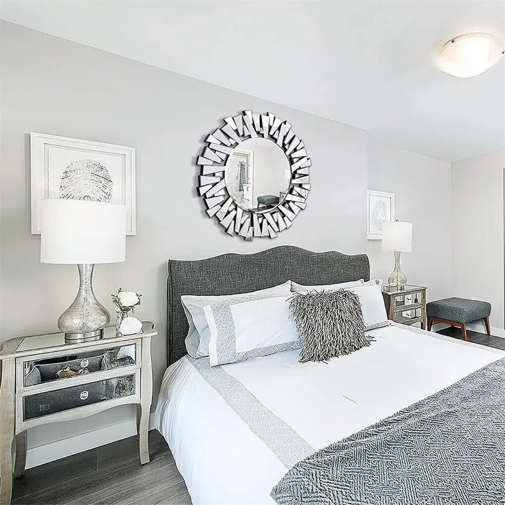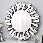 Silver Starburst Large Round Wall Mirror for Home Decor – Living/Dining/Bedroom/Bathroom