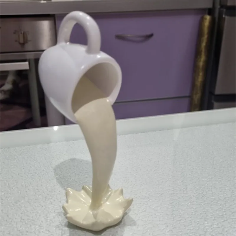 Spilled Coffee Mug Resin Statue Sculpture Kitchen Home Decor Craft – Liquid Splash Art Pouring Magic Decorative Figurine