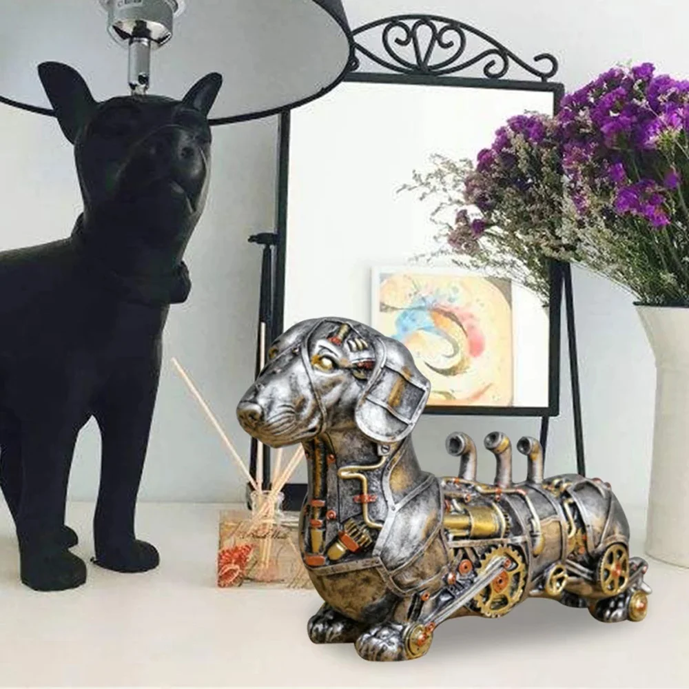 Are you looking to add a touch of unique style and personality to your living space? Our Steampunk Dog Statue Wolf is the perfect solution for all your decorative needs. This exquisitely crafted miniature animal sculpture will instantly transform your living room into a captivating realm of wonder and elegance.