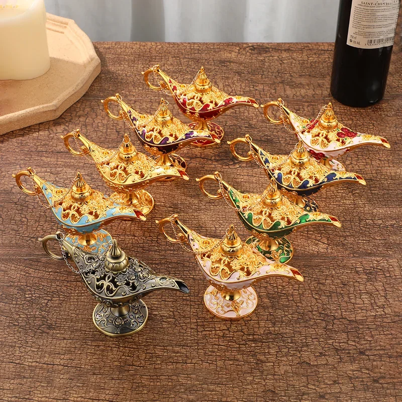 Tired of dull and uninspiring home decor? The Aladdin Magic Fairy Lamp is here to add a touch of whimsy and magic to your living space. This retro votive oil lamp doubles as an incense burner, bringing a unique blend of functionality and artistry to your home.