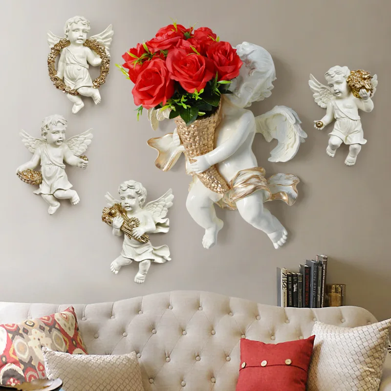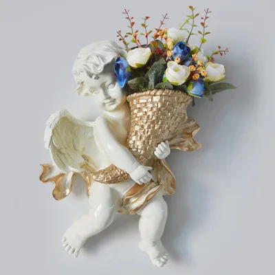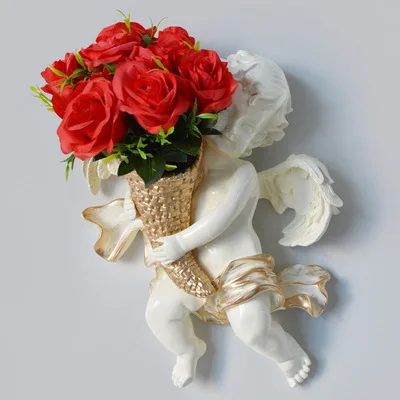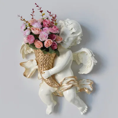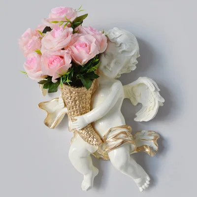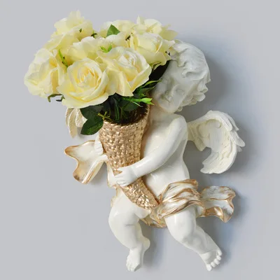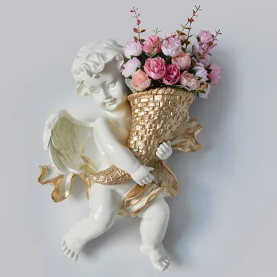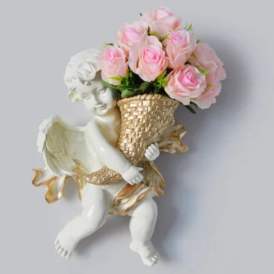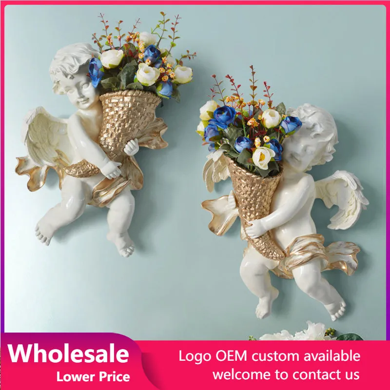 Elevate your home decor with the European Home Wall sculpture angel flower pot Vase Mural Crafts Decoration, a stunning piece that adds elegance and charm to any room.