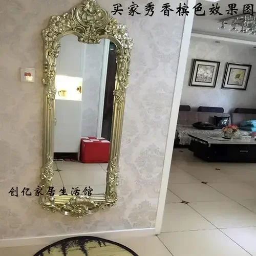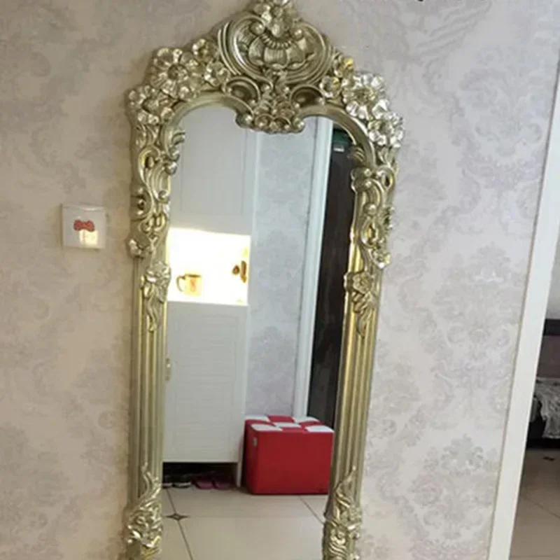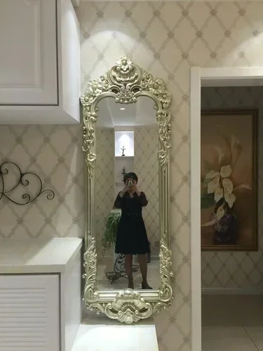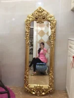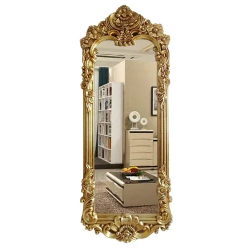 This elegant mirror not only serves as a functional tool for applying makeup and perfecting your look, but also doubles as a stunning piece of wall or floor decor. Its vintage gold finish adds a touch of sophistication to any room, making it a versatile ornament for your space.