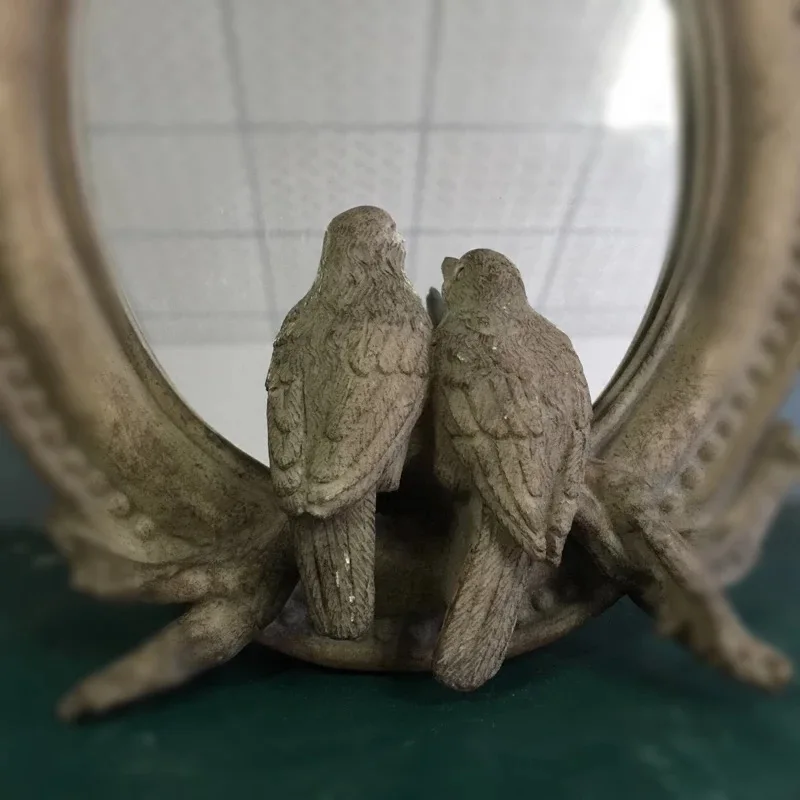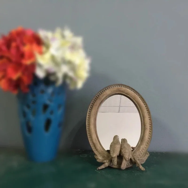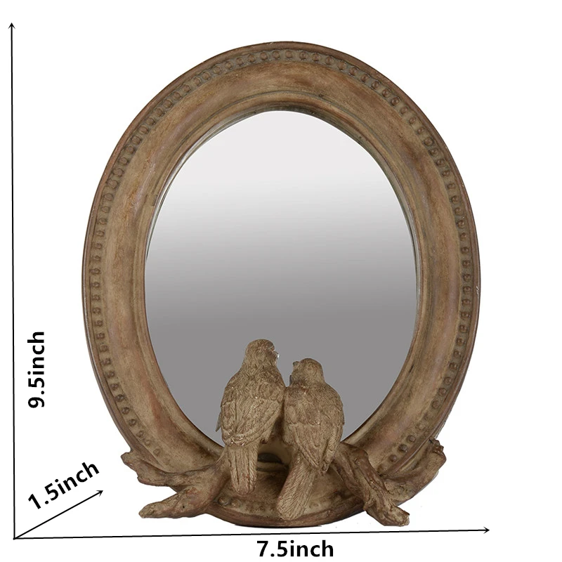 Introducing our Vintage Oval Frame Mirror with Decorative Birds, a stunning addition to any space that is sure to capture attention and add a touch of elegance. This ornate mirror not only serves as a functional piece but also doubles as a beautiful work of art that will enhance the aesthetic of any room.