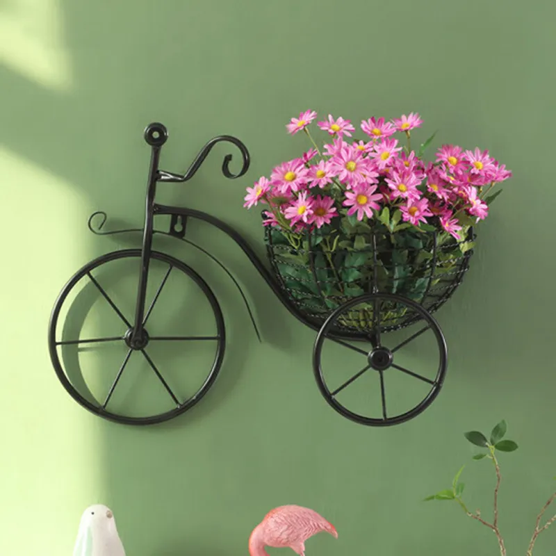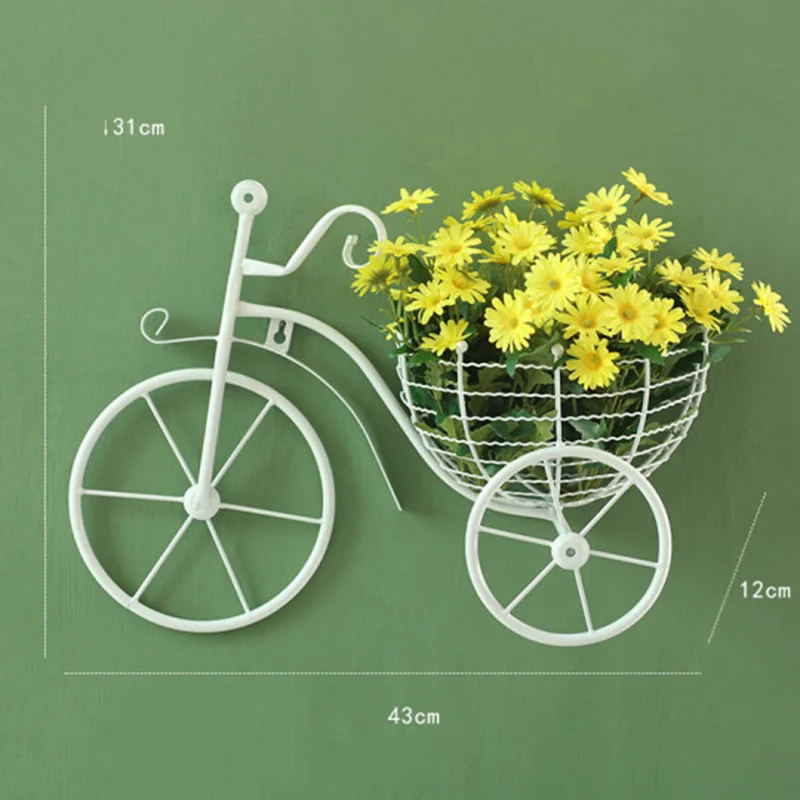 Metal Bicycle Flower Basket Wall Art Wall Mount Hanging Flower Rack