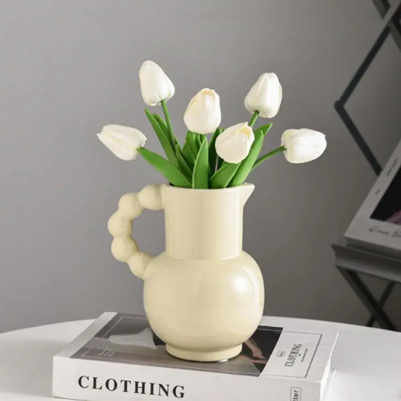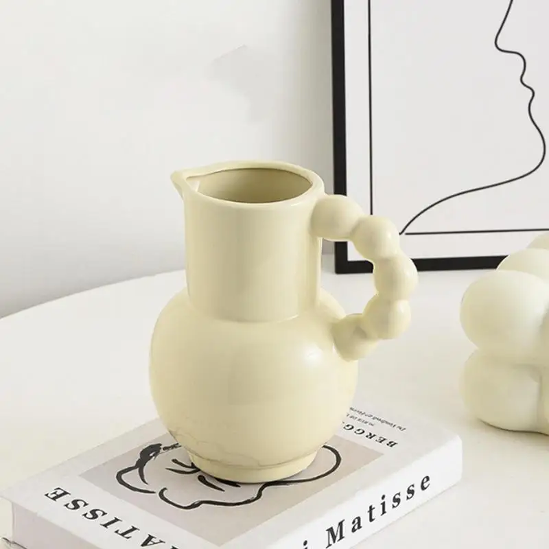 Struggling to find the perfect vase that seamlessly blends into your home decor while adding a touch of elegance? Look no further than our Ceramic Milk Jug Vase With Handle!